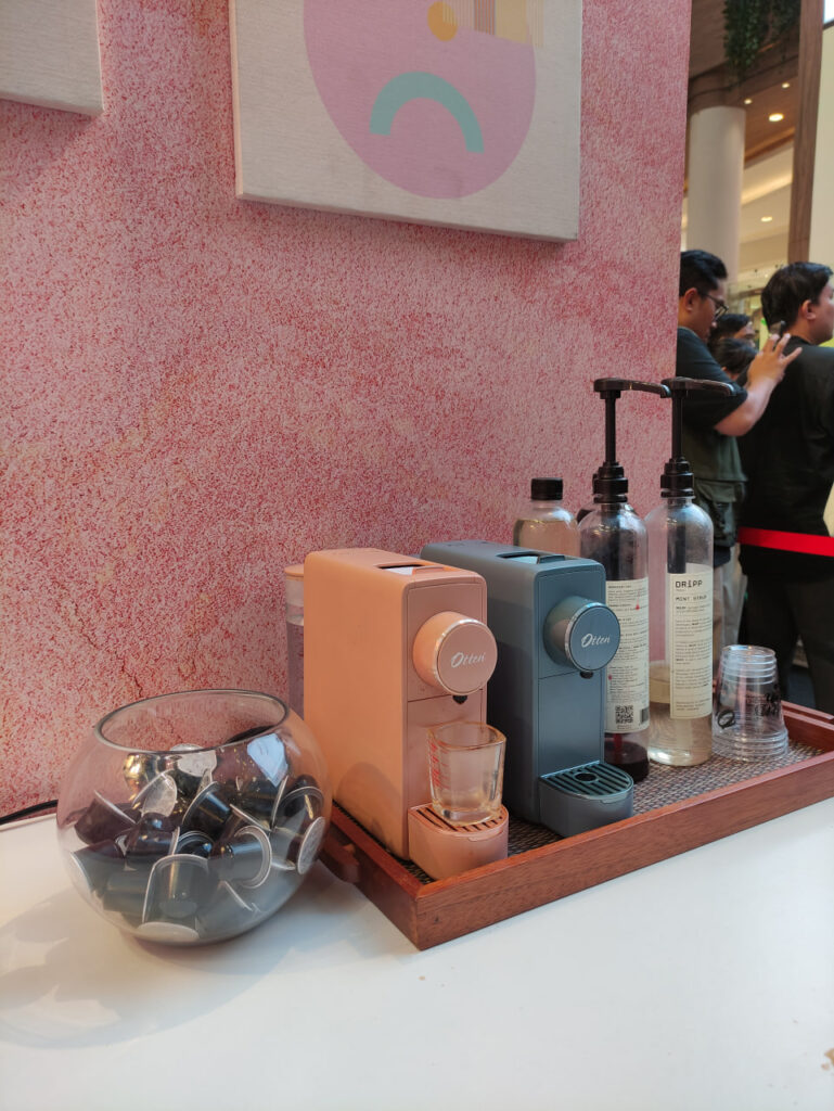 Saat ke Lokasi ini awalnya aku sempat bingung sih, apa hubungannya Hair Dryer dengan mesin kopi. Ternyata konsep yang ditawarkan adalah menikmati pengalaman praktis membuat kopi sambil ngeringin rambut. Jadi kita sebagai cewek-cewek yang kalo dandan suka ribet dan lama ya, nah, dengan mesin kopi O10 Opresso Capsule Coffe Machine ini, buat kopi bisa jauh lebih cepat dan praktis daripada proses mengeringkan rambut kita yang basah (hihi). Jadi, sambil menunggu rambut kering, bisa lah sambil ngopi-ngopi cantik.